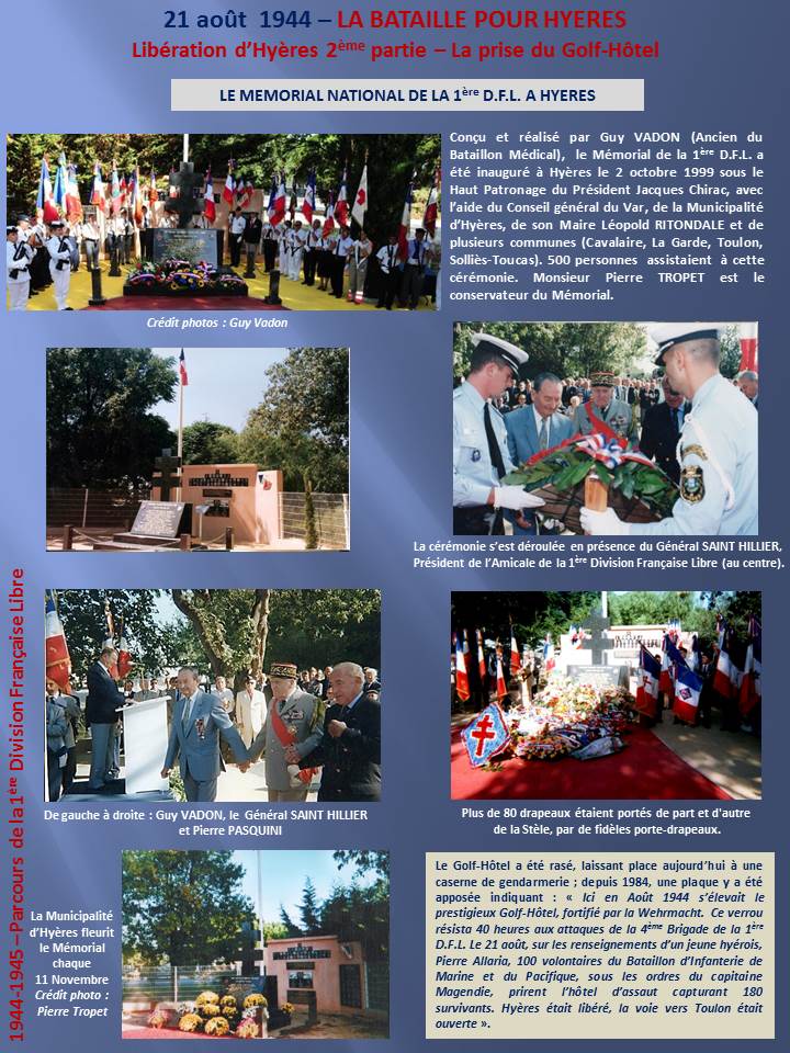 Monsieur VADON est notamment le concepteur du Memorial national de la 1ère DFL d'Hyères, inauguré en 1999 par Monsieur Pierre PASQUINI, Ancien ministre des anciens combattants, le général SAINT HILLIER et le Maire de Hyères Léopold RITONDALE
